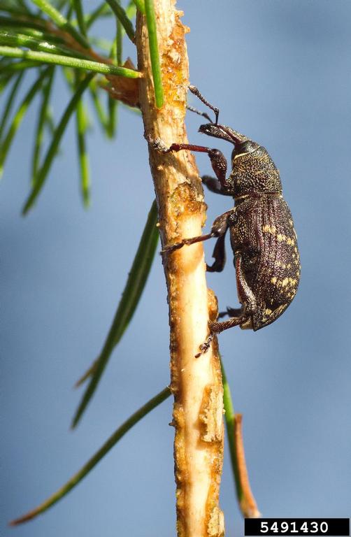 🔴Так, наприклад, великий сосновий довгоносик прогризає кору молодих дерев і сіянців у лісових культурах. Окрім цього, личинки, які відроджуються під корою, також пошкоджують камбій. Такий вплив сильно ослаблює молоді дерева, а в умовах посухи або високих температур це поєднання може призвести до відмирання молодняку.