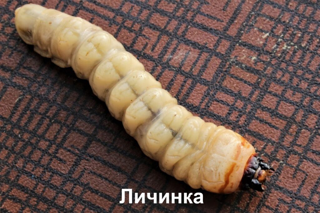 Через два тижні з яєць відроджуються молоді личинки, які живляться в корі та частково в лубі протягом усього вегетаційного періоду аж до осені. З пониженням середньодобової температури залишаються зимувати у корі. На весні наступного року личинки проникають у луб та у заболонь, де живляться до осені, прокладаючи ходи, в яких зимують.