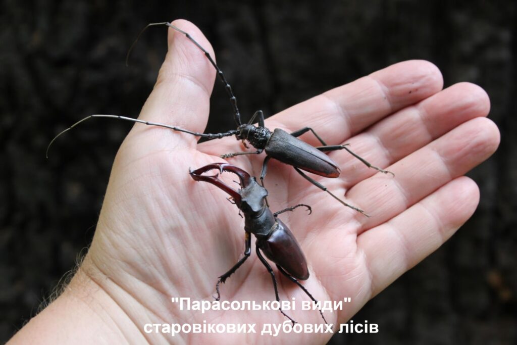 🌳Для дубових лісів України властиве значне біорізноманіття в якому визначну роль відіграють комахи камбіо- ксилофаги. Їх життєдіяльність надзвичайно тісно пов’язана з деревиною дубів. Серед цієї групи комах особливе місце займає великий дубовий вусач (Cerambyx cerdo), який, разом із жуком-оленем, є так званим «парасольковим» видом (umbrella species) – індикатором старовікових лісів. Охороняючи ділянки, де трапляються ці види, можна бути впевненим що разом із ними охороняють також усю екологічну спільноту їхнього середовища існування, у т.ч. й інші рідкісні види старовікових дубових лісів.